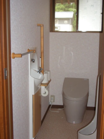 埋め込み式手洗いと、L型手すり、タオル掛けを設置しました。
