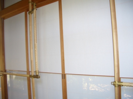 そして、寝室から出れるように 障子の出入口を遮断機の手すりとしました。
