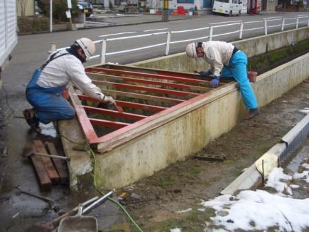 土間の上に 目ザラを取付て段差解消としました。