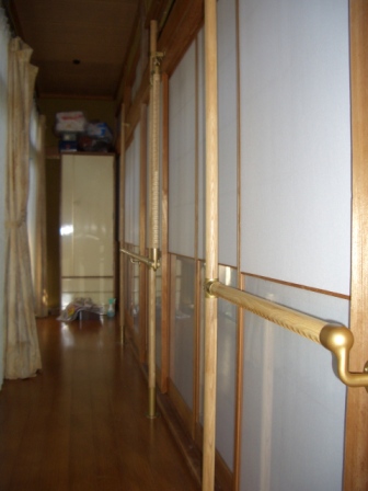 まず、廊下の壁に移動用の手すりを取り付けました。