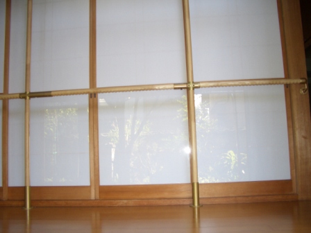 そして、寝室から出れるように 障子の出入口を遮断機の手すりとしました。