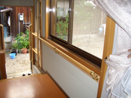 横手すり、縦手すりは、対象者の方の導線に応じて取り付けましたが、