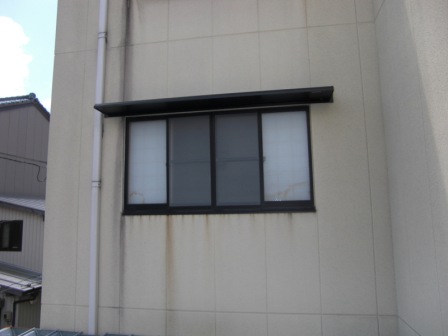 。このような外壁の窓に庇を取り付ける工事も請け負ってます。