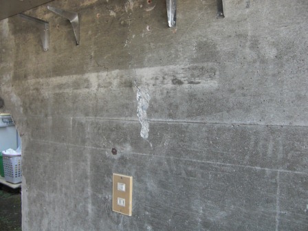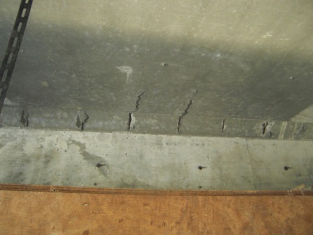 鉄筋がコンクリートの中でさびて脹らんでコンクリートがはがれて、鉄筋がむき出しになるところが 多数見受けられます。(下 写真)