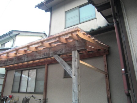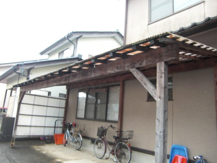 知り合いの実家の下屋が、今年の雪で折れたので何とかしてほしい!との依頼で